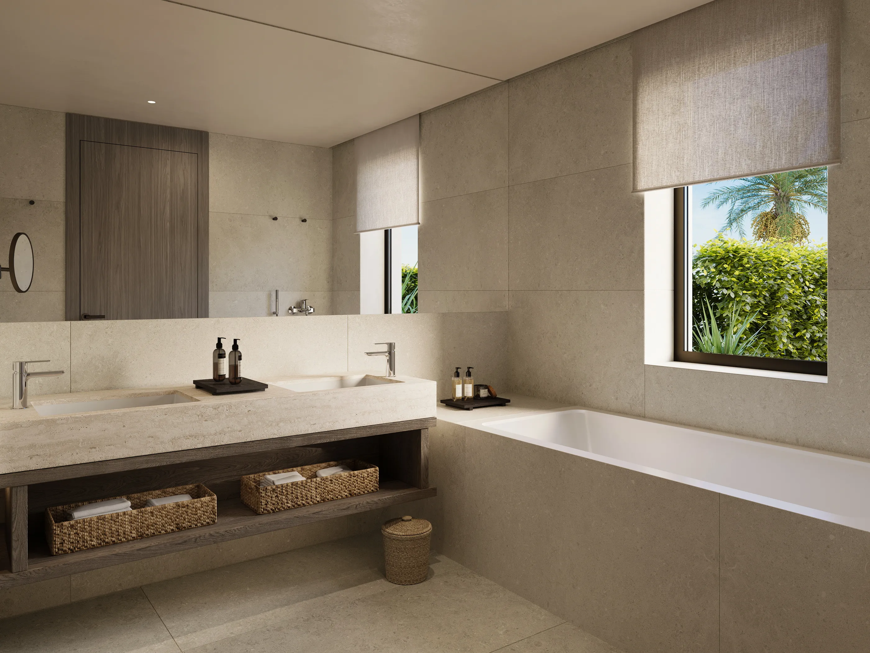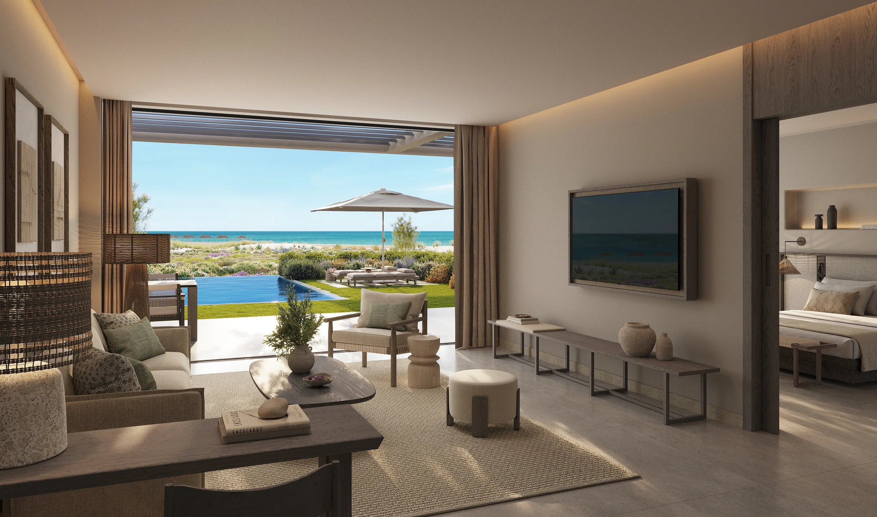 Ecru Cretan architecture with hints of terracotta, mature verdant palms, the endless blue reflected from sea view private pools – the palette at this island icon is Elounda to a T.