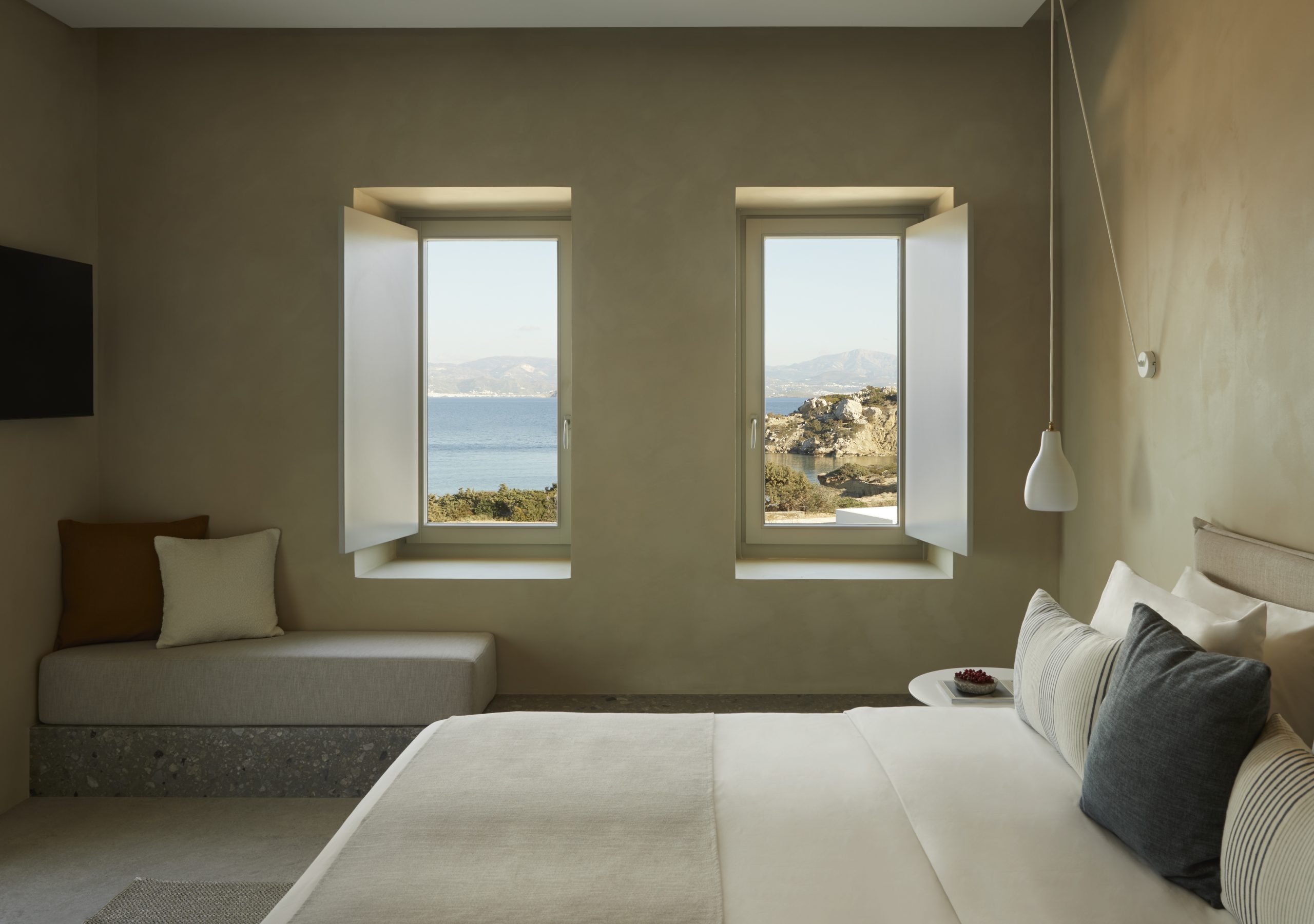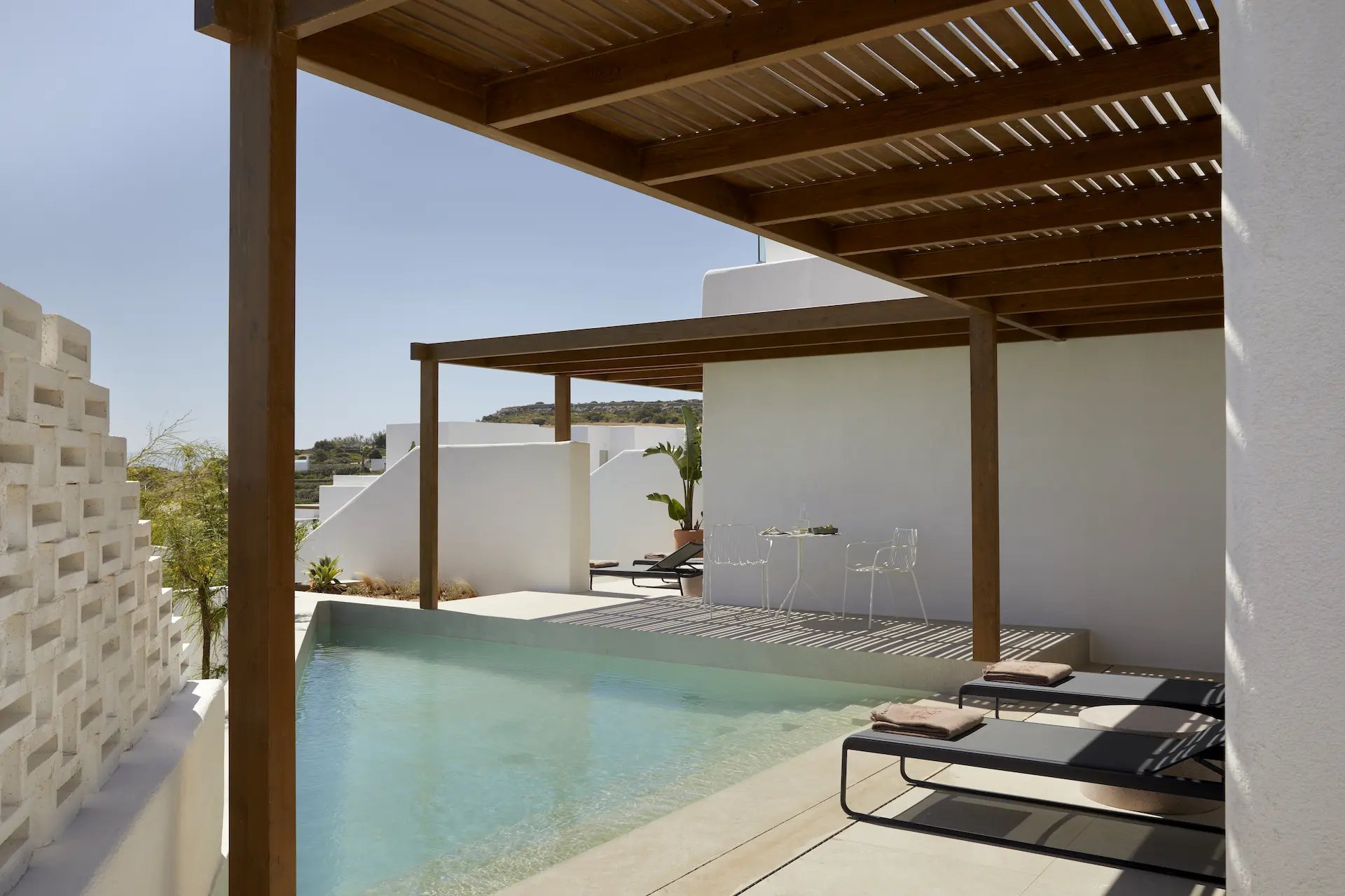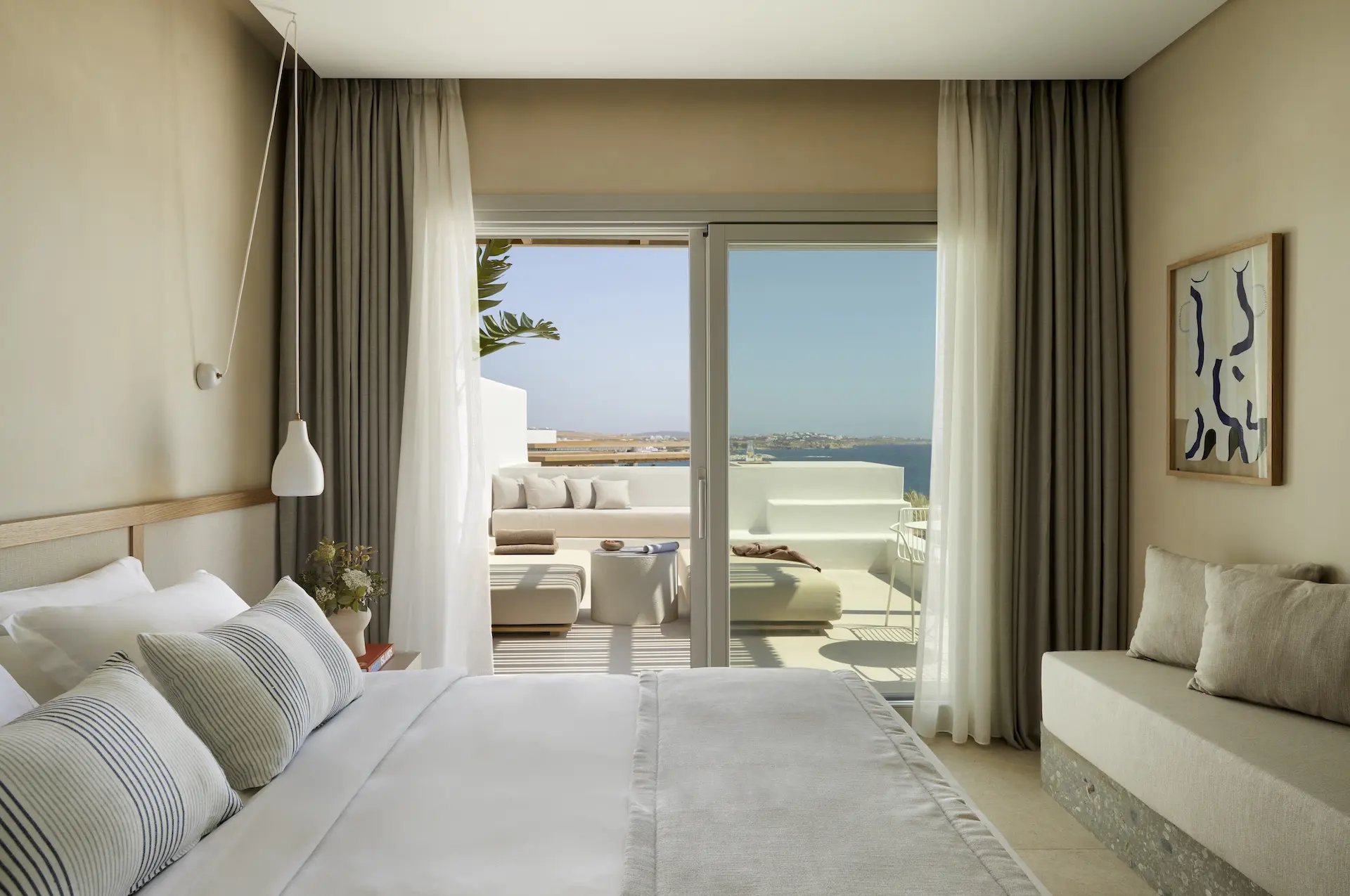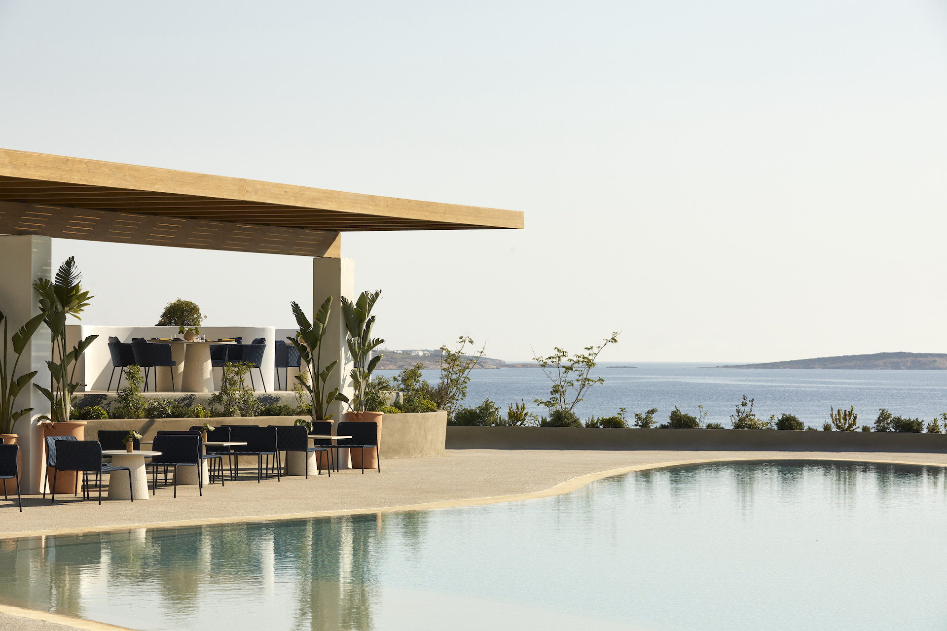 Nestled along Paros’ dynamic northern coastline, Cosme Hotel offers a luxurious escape designed for an intimate experience — this beachront haven is particularly well-suited for couples seeking a romantic getaway.