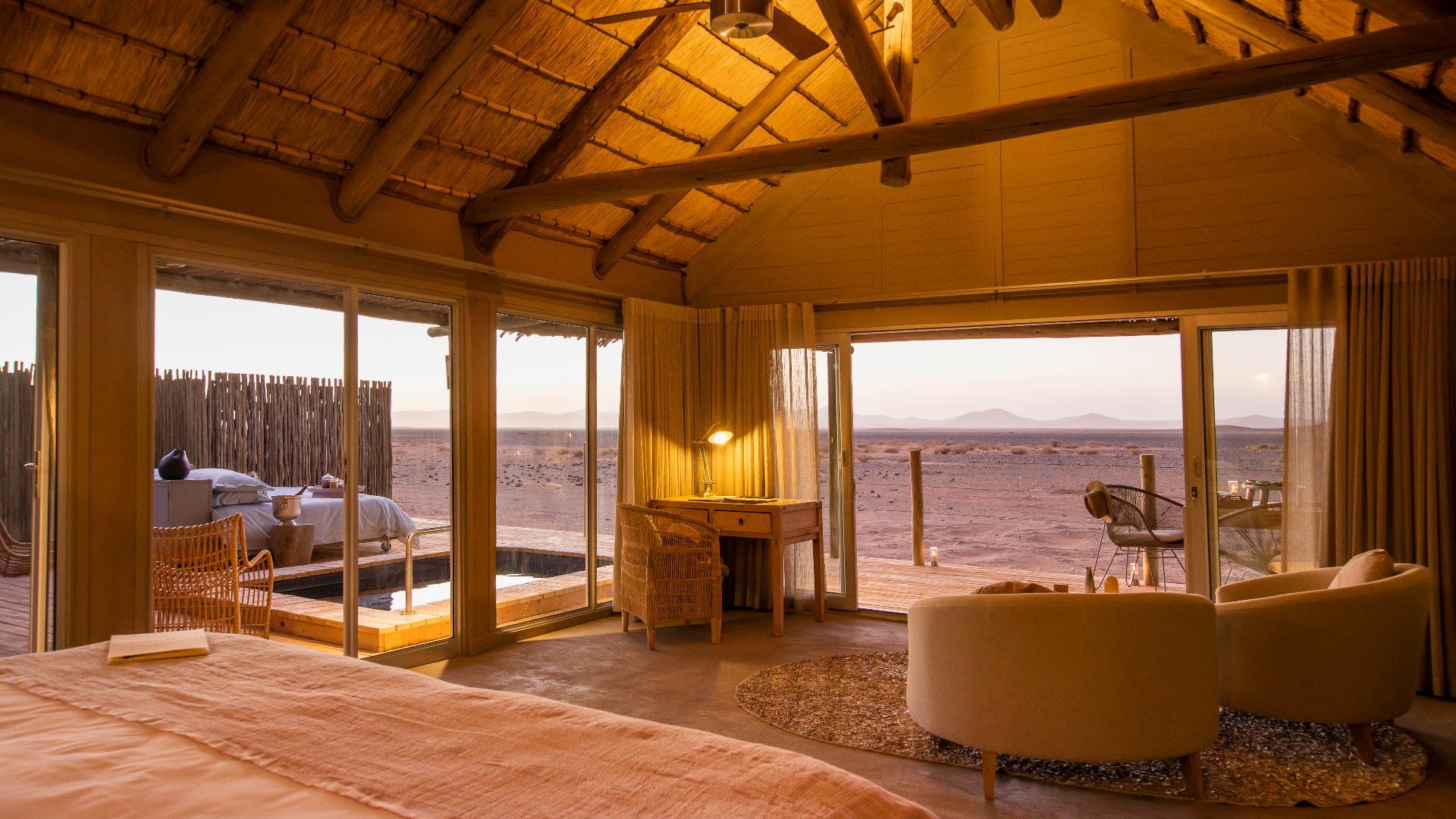 Meeting them is like stepping into a unique time capsule. They share their stories of survival in such a harsh climate, working the land for crops and tracking animals. The latter can be put into action with the help of a guide; endangered rhino and a myriad of other desert dwellers can be sought out the Herero way. Afterwards, tall tales can be told after dark around the torch-lit camp fire or by morning on the deck of the plunge pool.